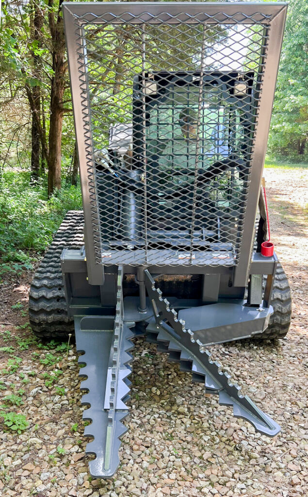 Full tree/root removal, versatile (posts, rocks), improved digging, debris flow, 'TAMEit' hose holder, superior grip, minimal post damage, 12" saw, 51" reach, 30 7/8" opening.